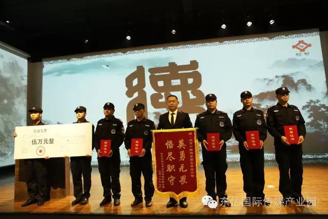 今天上午,北京中视东升文化传媒有限公司总裁高素梅女士参加了高井村委会组织的表彰仪式,为在9月22日东亿园区内围捕持刀劫匪过程中表现突出的杨志刚、鉴超、刘学乐、关京京、张二亮等14名安保人员及千翔保安队颁发锦旗及现金支票。高碑店乡副乡长文波、高碑店乡派出所副所长马江、高井村党总支书记庄虔春共同出席了当天的颁奖仪式。