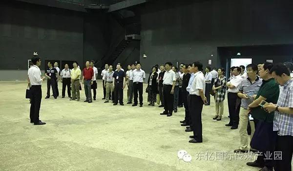 参观团一行首先参观了东亿园区的亮点之一——2200㎡东亿天弘演艺大楼,当听到演艺大楼曾经承接过许多知名节目之后,随行人员无不拍照留念,纷纷为演播厅的规模和设备的专业程度而称赞。